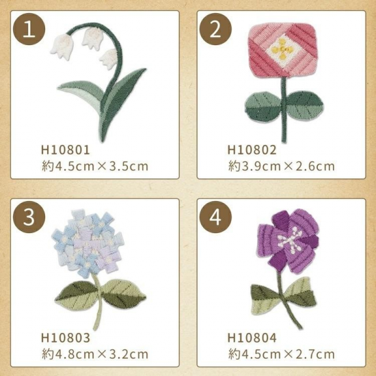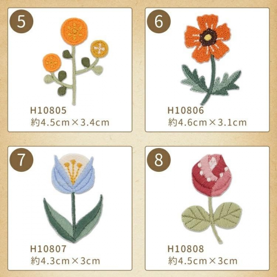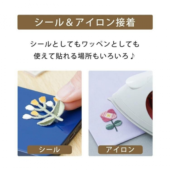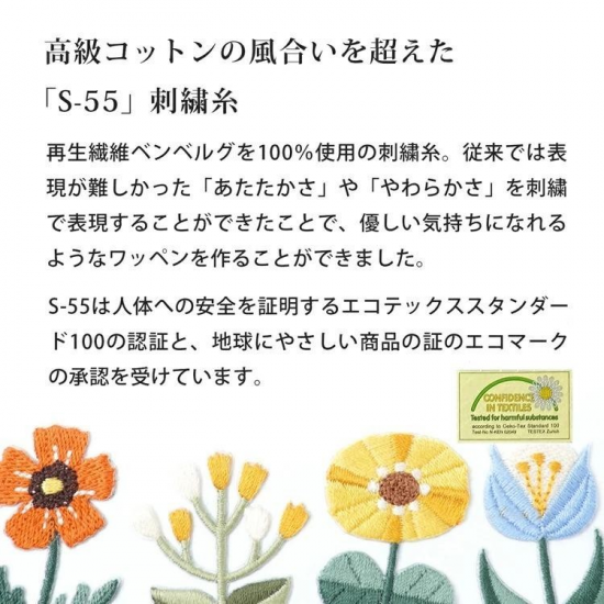 エコ素材S-55刺繍糸を使用した色鮮やかで上品な光沢の花柄ワッペン